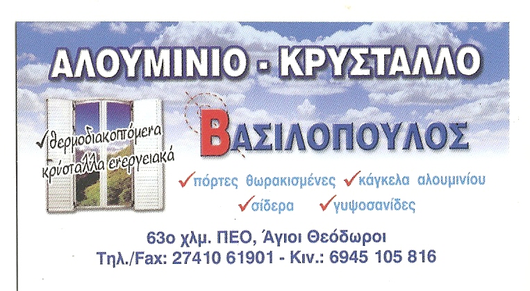 customer tabsΕπικοινωνίαΤζάκια - κρύσταλλα - καθρέπτεςΑλουμίνια & σιδηροκατασκευέςΠόρτες θωρακισμένεςΓυψοσανίδες - πάνελ Κάγκελα αλουμινίου Τζάμια και ΚρύσταλλαΚαθρέπτεςΔόμηση - ΚατοικίαΕίδη ΑλουμινίουΚατασκευές ΑλουμινίουΚουφώματα ΑλουμινίουΣυστήματα Αλουμινίου και ΣιδήρουΛοιπά63ο χλμ. Π.Ε.Ο. Αθηνών - Κορίνθου, Άγιοι Θεόδωροι, ΚορινθίαΑΓΙΟΙ ΘΕΟΔΩΡΟΙ ΚΟΡΙΝΘΙΑΣΚΟΡΙΝΘΙΑΠΕΛΟΠΟΝΝΗΣΟΣ 2741061901 69451058162741061901vasilopoulos.1968@hotmail.grΒασιλόπουλος Γεώργιος Το προτείνω (έχει προταθεί 0 φορές) ΦωτογραφίεςFacebook LikeShare on FacebookTweet Widget