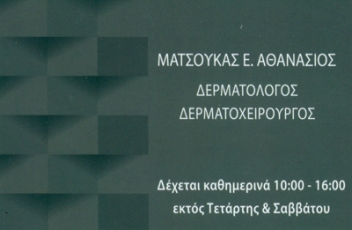 customer tabsΕπικοινωνίαΔερματολόγος - ΔερματοχειρουργόςLaser - ΑποτρίχωσηΛιποαναρρόφησηΑνανέωση προσώπουΚυτταρίτιδαΧαρτογράφηση σπίλων.Δέχεται καθημερινά 10:00-16:00εκτός Τετάρτης και ΣαββάτουΔερματολόγοι - ΑφροδισιολόγοιΥγείαΦαβιέρου 14, Πλ. Αγ. Βαρβάρας, ΧαλκίδαΧΑΛΚΙΔΑ ΕΥΒΟΙΑΣΕΥΒΟΙΑΣΤΕΡΕΑ ΕΛΛΑΔΑ 2221029705 69732494742221060763matsoukasderm@yahoo.grhttps://www.facebook.com/athanasios.matsoukas1 Το προτείνω (έχει προταθεί 0 φορές) ΦωτογραφίεςFacebook LikeShare on FacebookTweet Widget