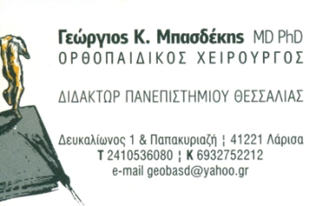 customer tabsΕπικοινωνίαΔιδάκτωρ Παν/μιου ΘεσσαλίαςΧειρουργική αποκατάσταση - Κατάγματα - Αθλητικές κακώσεις - Οστεοπόρωση - Παθήσεις σπονδυλικής στήληςΔέχεται κατόπιν ραντεβούΟρθοπεδικοί ΙατροίΥγείαΔευκαλίωνος 1 & ΠαπακυριαζήΛΑΡΙΣΑΘΕΣΣΑΛΙΑ 2410536080 6932752212geobasd@yahoo.gr Το προτείνω (έχει προταθεί 0 φορές) ΦωτογραφίεςFacebook LikeShare on FacebookTweet Widget