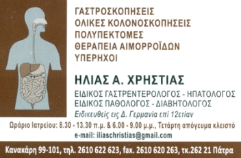 customer tabsΕπικοινωνίαΩράριο: Καθημερινά 08:00-14:00 & 17:30-20:30 εκτός ΤετάρτηςΓαστρεντερολόγος - Ηπατολόγος - Ειδικός ΠαθολόγοςΓαστρεντερολόγοιΥγείαΠαθολόγοιΗπατολόγοιΚανακάρη 99ΠΑΤΡΑ ΑΧΑΪΑΣΑΧΑΪΑΠΕΛΟΠΟΝΝΗΣΟΣ 2610622623 6948606892iliaschristias@gmail.com Το προτείνω (έχει προταθεί 6 φορές) ΦωτογραφίεςFacebook LikeShare on FacebookTweet Widget