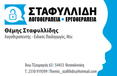 -Το Κέντρο Λογοθεραπείας - Εργοθεραπείας Σταφυλλίδη ιδρύθηκε το 2011 με έδρα την Θεσσαλονίκη.