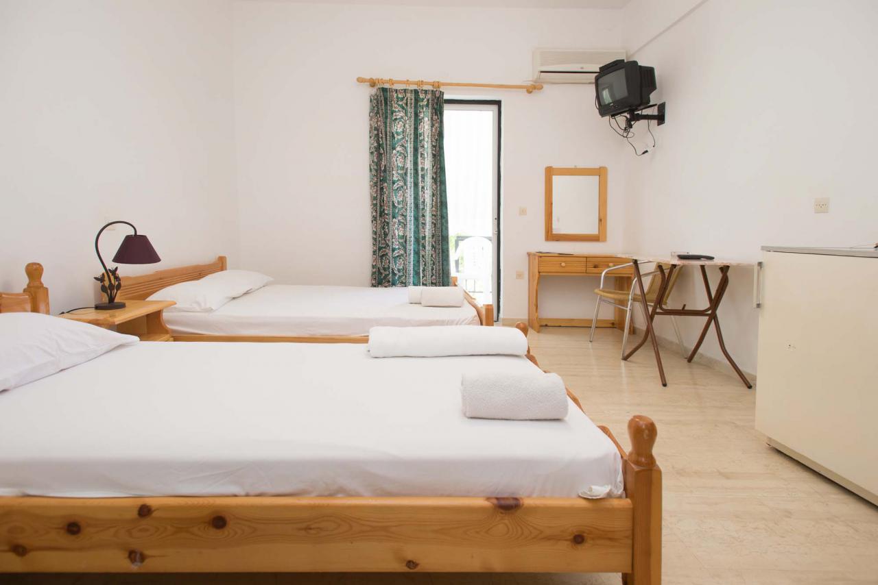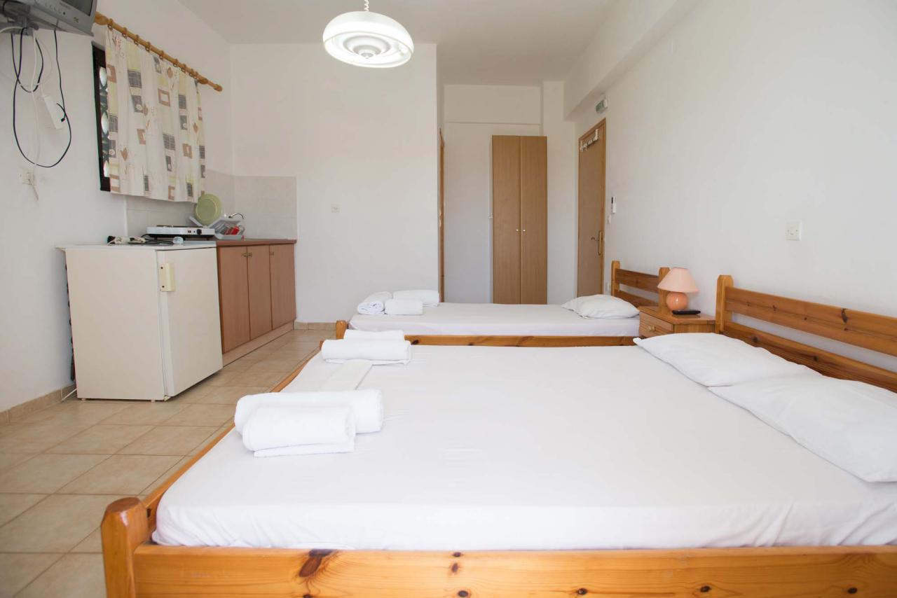 Τα κάθε διαμέρισμα ξεχωριστά διαθέτει ένα διπλό και ένα μονό κρεβάτι, ωστόσο υπάρχει η δυνατότητα τοποθέτησης ενός ανοιγόμενου κρεβατιού ή ακόμα και παρκοκρέβατου αν χρειαστεί. Επίσης, κουζίνα, ψυγείο, μπάνιο, κλιματισμός, τηλεόραση και άνετα μπαλκόνια συναντώνται σε όλα τα διαμερίσματα μας.
