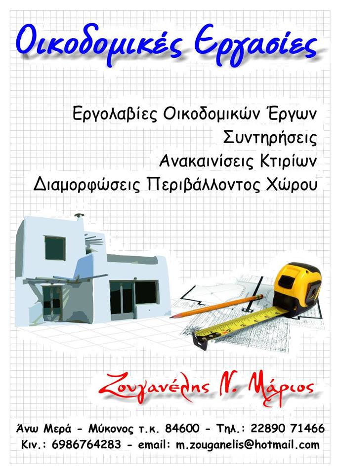 customer tabsΕπικοινωνίαΟικοδομικές εργασίες - Εργολάβος Οικοδομών Συντηρήσεις Ανακαινίσεις κτιρίων - Κατασκευές - Διαμορφώσεις περιβάλλοντος χώρουΟικοδομικές Επιχειρήσεις και ΕργασίεςΔόμηση - ΚατοικίαΆνω μεράΜΥΚΟΝΟΣ ΚΥΚΛΑΔΩΝΚΥΚΛΑΔΕΣΝΗΣΙΑ ΑΙΓΑΙΟΥ ΠΕΛΑΓΟΥΣ 2289071466 69867642832289071466m.zouganelis@hotmail.comΟΙΚΟΔΟΜΙΚΕΣ ΕΡΓΑΣΙΕΣ - ΜΑΡΙΟΣ Ν.ΖΟΥΓΑΝΕΛΗΣ Το προτείνω (έχει προταθεί 1 φορές) ΦωτογραφίεςFacebook LikeShare on FacebookTweet Widget