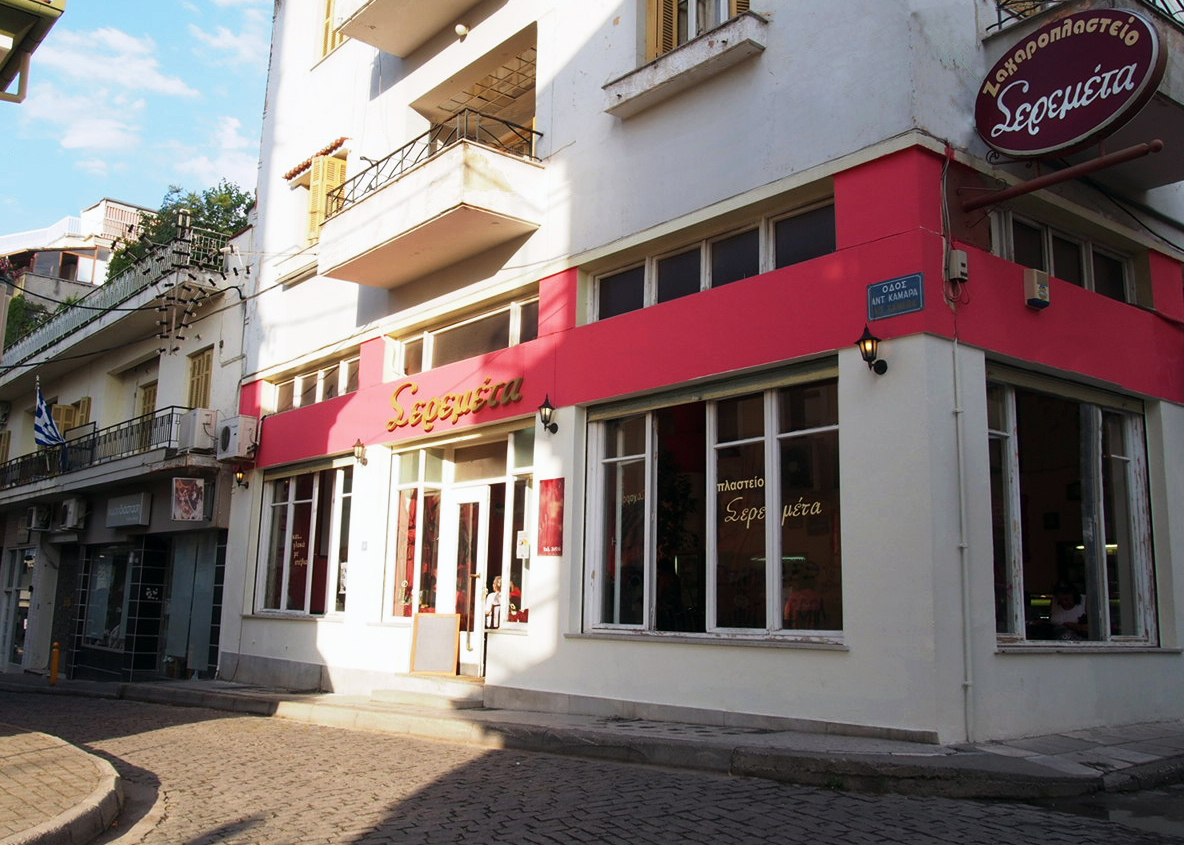 Το κτήριο που στεγάζεται το σημερινό ζαχαροπλαστείο ΣΕΡΕΜΕΤΑ, άρχισε να κτίζεται το 1948 και εγκαινιάστηκε τον Μάρτη του 1950.Η αίθουσά του, ευρύχωρη και διακριτικά πολυτελής, αποτελούσε χώρο κοινωνικών συναντήσεων και προσφέρονταν για πολιτιστικές εκδηλώσεις, συνεδριάσεις, δεξιώσεις, συνεστιάσεις κλπ μια και την εποχή εκείνη έλειπαν ανάλογες αίθουσες.