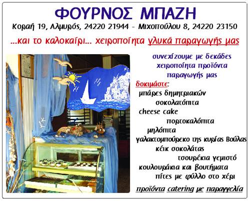 customer tabsΕπικοινωνίαΑρτοποιεία - ΖαχαροπλαστείαΛοιπάΚοραή 19, Αλμυρός, ΒόλοςΒΟΛΟΣ ΜΑΓΝΗΣΙΑΣΜΑΓΝΗΣΙΑΘΕΣΣΑΛΙΑ 2422021944 6948831350antmpazis@gmail.com Το προτείνω (έχει προταθεί 0 φορές) ΦωτογραφίεςFacebook LikeShare on FacebookTweet Widget