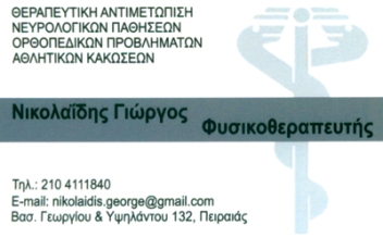 customer tabsΕπικοινωνίαΦυσικοθεραπευτέςΥγείαΒ. Υψηλάντου 132, ΠειραιάςΠΕΙΡΑΙΑΣ ΑΤΤΙΚΗΣΑΤΤΙΚΗΣΤΕΡΕΑ ΕΛΛΑΔΑ 2104111840 6932198548ornikolaidis@gmail.com Το προτείνω (έχει προταθεί 0 φορές) ΦωτογραφίεςFacebook LikeShare on FacebookTweet Widget