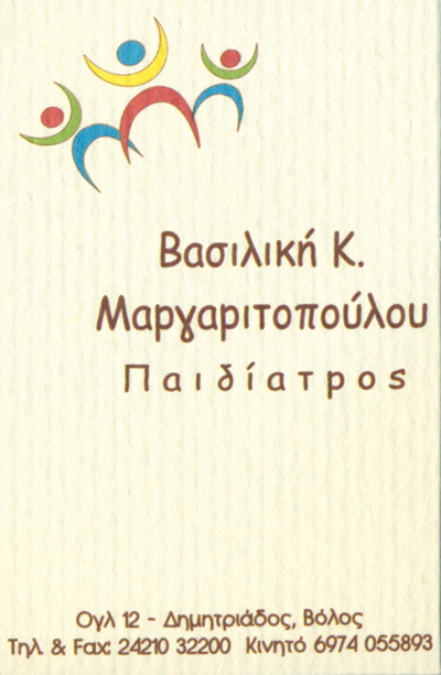 customer tabsΕπικοινωνίαΠαιδίατροιΥγείαΟΓΛ 12 με Δημητριάδος, Βόλος, ΜαγνησίαςΒΟΛΟΣ ΜΑΓΝΗΣΙΑΣΜΑΓΝΗΣΙΑΘΕΣΣΑΛΙΑ 2421032200 6974055893v-marg@otenet.gr Το προτείνω (έχει προταθεί 5 φορές) ΦωτογραφίεςFacebook LikeShare on FacebookTweet Widget