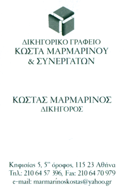 customer tabsΕπικοινωνίαΔικηγόροι και Δικηγορικά ΓραφείαΥπηρεσίεςΛεωφ. Κηφισίας 5, Αμπελόκηποι, ΑττικήΑΜΠΕΛΟΚΗΠΟΙ ΑΤΤΙΚΗΣΑΤΤΙΚΗΣΤΕΡΕΑ ΕΛΛΑΔΑ 2106450067 21064573962106470979marmarinosofiss@gmail.com Το προτείνω (έχει προταθεί 0 φορές) ΦωτογραφίεςFacebook LikeShare on FacebookTweet Widget