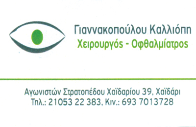 customer tabsΕπικοινωνίαΔέχεται Δευτέρα 18:30 - 20:30Τρίτη & Πέμπτη 17:00 -20:30Τετάρτη 09:00 - 10:30ΟφθαλμίατροιΥγείαΑγωνιστών Στρατοπέδου 39, Χαϊδαρι, ΑττικήΧΑΪΔΑΡΙ ΑΤΤΙΚΗΣΑΤΤΙΚΗΣΤΕΡΕΑ ΕΛΛΑΔΑ 2105322383 6937013728 Το προτείνω (έχει προταθεί 0 φορές) ΦωτογραφίεςFacebook LikeShare on FacebookTweet Widget