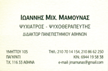 customer tabsΕπικοινωνία2η διεύθυνση: Οιδίποδος 41, Θήβα.Δέχεται καθημερινά, κατόπιν ραντεβού.ΨυχίατροιΨυχοθεραπευτέςΥγείαΥμηττού 105, Παγκράτι, ΑττικήΠΑΓΚΡΑΤΙ ΑΤΤΙΚΗΣΑΤΤΙΚΗΣΤΕΡΕΑ ΕΛΛΑΔΑ 2107014154 6944195838gmamunas@gmail.com Το προτείνω (έχει προταθεί 0 φορές) ΦωτογραφίεςFacebook LikeShare on FacebookTweet Widget