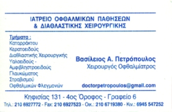 customer tabsΕπικοινωνίαΟφθαλμολογικές εξετάσεις, καταράκτης - γλαύκωμα.Δέχεται Δευτέρα, Τετάρτη 18:00 - 21:00, κατόπιν ραντεβού.ΟφθαλμίατροιΥγείαΛεωφόρος Κηφισίας 131, ΑμπελόκηποιΑΜΠΕΛΟΚΗΠΟΙ ΑΤΤΙΚΗΣΑΤΤΙΚΗΣΤΕΡΕΑ ΕΛΛΑΔΑ 2106927772 6945547252doctorpetropoulos@gmail.com Το προτείνω (έχει προταθεί 0 φορές) ΦωτογραφίεςFacebook LikeShare on FacebookTweet Widget