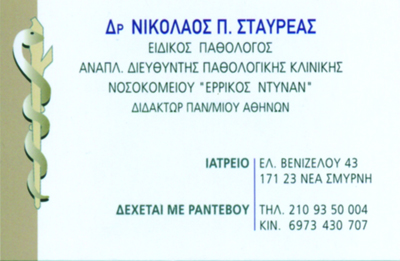 customer tabsΕπικοινωνίαΕιδικός ΠαθολόγοςΑναπληρωτής Διευθυντής Α' Παθολογικής ΚλίνικήςΕρρίκος ΝτυνάνΔέχεται καθημερινά 17:00 -21:00 με ραντεβούΠαθολόγοιΥγείαΕλ. Βενιζέλου 43, Νέα Σμύρνη, ΑττικήΝΕΑ ΣΜΥΡΝΗ ΑΤΤΙΚΗΣΑΤΤΙΚΗΣΤΕΡΕΑ ΕΛΛΑΔΑ 2109350004 6973430707nstavr@hotmail.gr Το προτείνω (έχει προταθεί 0 φορές) ΦωτογραφίεςFacebook LikeShare on FacebookTweet Widget