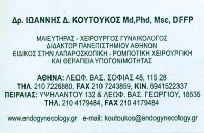 customer tabsΕπικοινωνίαΔιδάκτωρ Πανεπιστημίου ΑθηνώνΕιδικός στη Λαπαροσκοπική Ρομποτική ΧειρουργικήΘεραπεία ΥπογονιμότηταςΚαθημερινά κατόπιν ραντεβού.Μαιευτήρες - ΓυναικολόγοιΥγείαΛεωφόρος Βασιλίσσης Σοφίας 48, ΑθήναΥψηλάντου 132 & Λεωφόρος Βασιλέως Γεωργίου, ΠειραιάςΑΘΗΝΑ ΑΤΤΙΚΗΣΠΕΙΡΑΙΑΣ ΑΤΤΙΚΗΣΑΤΤΙΚΗΣΤΕΡΕΑ ΕΛΛΑΔΑ 2107226880 2104179484 6941522337info@endogynecology.grwww.endogynecology.grΛαπαροσκοπικό Κέντρο Αθηνών Το προτείνω (έχει προταθεί 0 φορές) ΦωτογραφίεςFacebook LikeShare on FacebookTweet Widget