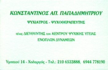 customer tabsΕπικοινωνίαΝευρολόγοι - ΨυχίατροιΨυχοθεραπευτέςΥγείαΥμηττού 14, ΧολαργόςΧΟΛΑΡΓΟΣ ΑΤΤΙΚΗΣΑΤΤΙΚΗΣΤΕΡΕΑ ΕΛΛΑΔΑ 2106533888 694778190admipak@yahoo.com Το προτείνω (έχει προταθεί 0 φορές) ΦωτογραφίεςFacebook LikeShare on FacebookTweet Widget