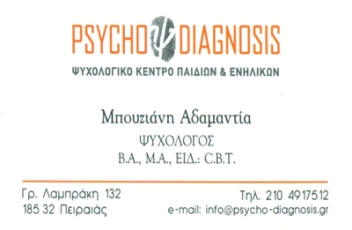 customer tabsΕπικοινωνίαΨυχολόγοιΥγείαΨυχοθεραπευτέςΓρ. Λαμπράκη 132, ΠειραιάςΠΕΙΡΑΙΑΣ ΑΤΤΙΚΗΣΑΤΤΙΚΗΣΤΕΡΕΑ ΕΛΛΑΔΑ 2104917512 6992175401adamadia_bouziani@hotmail.cominfo@psycho-diagnosis.grwww.psycho-diagnosis.gr Το προτείνω (έχει προταθεί 0 φορές) ΦωτογραφίεςFacebook LikeShare on FacebookTweet Widget