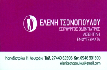 customer tabsΕπικοινωνίαΔέχεται καθημερινά πρωί & Απόγευμα κατόπιν ραντεβούΧειρουργοί ΟδοντίατροιΥγείαΚαποδιστρίου 11, Λουτράκι, ΚόρινθοςΛΟΥΤΡΑΚΙ ΚΟΡΙΝΘΟΥΚΟΡΙΝΘΙΑΠΕΛΟΠΟΝΝΗΣΟΣ 2774062896 6946901300elenitsonopoulou@gmail.com Το προτείνω (έχει προταθεί 0 φορές) ΦωτογραφίεςFacebook LikeShare on FacebookTweet Widget