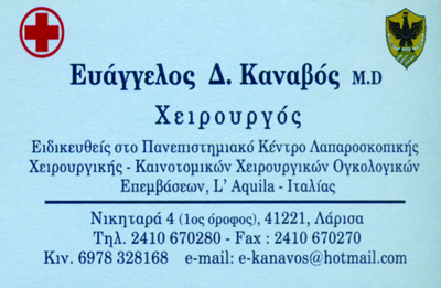 customer tabsΕπικοινωνίαΓενικοί ΧειρουργοίΥγείαΝικηταρά 4, ΛάρισαΛΑΡΙΣΑΘΕΣΣΑΛΙΑ 2410670280 69783281682410670270e-kanavos@hotmail.com Το προτείνω (έχει προταθεί 3 φορές) ΦωτογραφίεςFacebook LikeShare on FacebookTweet Widget
