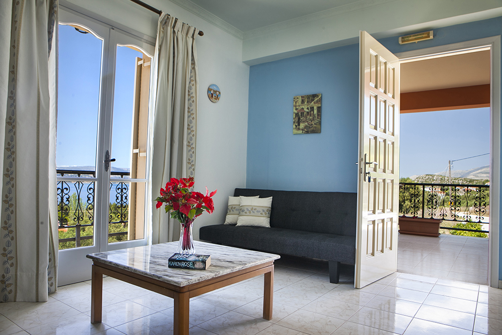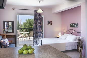 Polymnia is in a beautiful setting looking out to sea, located in a quiet area of the holiday resort of Lassi. The nearest beach is only 400 metres away while Makris and Platis Gialos are within 2 km walking distance. The location of the accommodation makes it ideal for either a beach holiday or for exploring the Island.