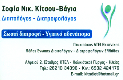 customer tabsΕπικοινωνίαΔέχεται με ΡαντεβούΔιαιτολόγοι - ΔιατροφολόγοιΥγείαΑλφειού 2, (Σταθμός ΚΤΕΛ - Χαλικιάτικα), Πύργος, ΗλείαςΠΥΡΓΟΣ ΗΛΕΙΑΣΗΛΕΙΑΠΕΛΟΠΟΝΝΗΣΟΣ 2621036433 6932424176kitsdiet@hotmail.gr Το προτείνω (έχει προταθεί 0 φορές) ΦωτογραφίεςFacebook LikeShare on FacebookTweet Widget