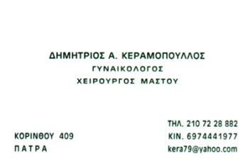 customer tabsΕπικοινωνίαΜαιευτήρας - Γυναικολόγος - Χειρουργός ΜαστούΠάτρα Δέχεται κάθε Παρασκευή με ΡαντεβούΚολωνάκι Δέχεται καθημερινά με ραντεβού2ο Ιατρείο:Ρηγίλλης 8, Κολωνάκι, Αθήνα τηλ:2107228882Μαιευτήρες - ΓυναικολόγοιΥγείαΧειρουργοί ΜαστούΚορίνθου 409, ΠάτραΠΑΤΡΑ ΑΧΑΪΑΣΑΧΑΪΑΠΕΛΟΠΟΝΝΗΣΟΣΑΘΗΝΑ ΑΤΤΙΚΗΣΑΤΤΙΚΗΣΤΕΡΕΑ ΕΛΛΑΔΑ 2610313313 2107228882 69744419772107236474kera79@yahoo.com Το προτείνω (έχει προταθεί 1 φορές) ΦωτογραφίεςFacebook LikeShare on FacebookTweet Widget