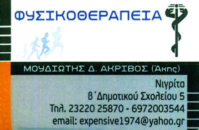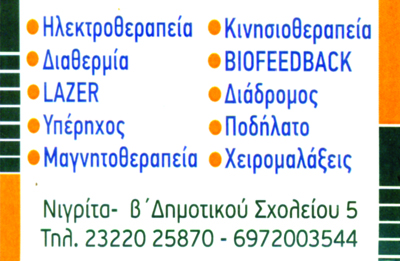 customer tabsΕπικοινωνίαΘεραπείες κατ'οίκονΣύμβαση με ΕΟΠΥΥΦυσικοθεραπευτέςΥγεία2ου Δημοτικού Σχολείου 5, Νιγρίτα, ΣερρώνΣΕΡΡΕΣΜΑΚΕΔΟΝΙΑ 2322025870 6972003544expensive1974@yahoo.gr Το προτείνω (έχει προταθεί 0 φορές) ΦωτογραφίεςFacebook LikeShare on FacebookTweet Widget