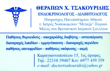 customer tabsΕπικοινωνίαΔέχεται καθημερινά Δευτέρα έως Παρασκευή 08:30 -13:30Δευτέρα - Τρίτη - Πέμπτη - Παρασκευή 17:30 -20:30Υπάρχει Δυνατότητα τηλεφωνικού ΡαντεβούΕνδοκρινολόγοιΔιαβητολόγοιΥγείαΚαραγιαννοπούλου 15, Λαμία, ΦθιώτιδαςΛΑΜΙΑ ΦΘΙΩΤΙΔΑΣΦΘΙΩΤΙΔΑΣΤΕΡΕΑ ΕΛΛΑΔΑ 2231039407 69774593592231039407doctortsakouridis@yahoo.gr Το προτείνω (έχει προταθεί 0 φορές) ΦωτογραφίεςFacebook LikeShare on FacebookTweet Widget