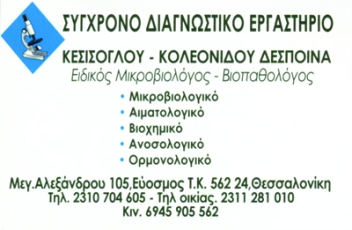 customer tabsΕπικοινωνίαΕιδικός Μικροβιολόγος - ΒιοπαθολόγοςΜικροβιολογικόΑιματολογικόΒιοχημικόΑνοσολογικόΟρμονολογικόΑιμοληψίες κατ΄ οίκονΔέχεται καθημερινά 08:00-13:00 & 18:00-20:30Σάββατο με ραντεβού.Μικροβιολόγοι - ΒιοπαθολόγοιΜικροβιολόγοιΥγείαΜεγ. Αλεξάνδρου 105, Εύοσμος, ΘεσσαλονίκηΕΥΟΣΜΟΣ ΘΕΣΣΑΛΟΝΙΚΗΣΘΕΣΣΑΛΟΝΙΚΗΜΑΚΕΔΟΝΙΑ 2310704605 2310766172 2311281010 Οικίας 6945905562 Το προτείνω (έχει προταθεί 0 φορές) ΦωτογραφίεςFacebook LikeShare on FacebookTweet Widget