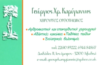 customer tabsΕπικοινωνίαΧειρούργος ΟρθοπεδικόςΑρθροσκοπική Επανορθωτική ΧειρουργικήΑθλητικές ΚακώσειςΤραυματιολογία - Βιοιατρικός ΒελονισμόςΔέχεται καθημερινά 10:00 -14:00 & 18:00 -21:00Ορθοπεδικοί ΙατροίΒελονισμόςΥγείαΔαίδαλου 11, Λιβαδειά, ΒοιωτίαΛΙΒΑΔΕΙΑ ΒΟΙΩΤΙΑΣΒΟΙΩΤΙΑΣΤΕΡΕΑ ΕΛΛΑΔΑ 2261089222 6944848617georgekarygiannis@yahoo.co.uk Το προτείνω (έχει προταθεί 0 φορές) ΦωτογραφίεςFacebook LikeShare on FacebookTweet Widget
