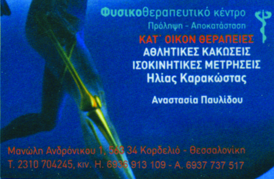 customer tabsΕπικοινωνίαΔέχεται καθημερινά 15:00 -20:00ΦυσικοθεραπευτέςΥγείαΜανώλη Ανδρόνικου 1, Ελευθεριό - Κορδελιό, ΘεσσαλονίκηΕΛΕΥΘΕΡΙΟ ΚΟΡΔΕΛΙΟ ΘΕΣΣΑΛΟΝΙΚΗΣΘΕΣΣΑΛΟΝΙΚΗΜΑΚΕΔΟΝΙΑ 2310704245 Η. 6936913109 Α. 6937737517karakostas54@gmail.com Το προτείνω (έχει προταθεί 3 φορές) ΦωτογραφίεςFacebook LikeShare on FacebookTweet Widget