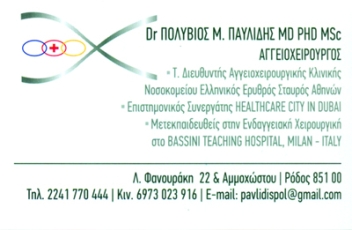 customer tabsΕπικοινωνίαΤέως Διευθυντής Αγγειολογικής Κλινικής Νοσ/μείου ΕρυθρόςΣταυρός ΑθηνώνΕπιστ. Συνεργάτης Health Care City DubaiΔέχεται 10:00-13:00 & 17:00 -20:00 με ραντεβούΑγγειοχειρούργοιΥγείαΛοχ. Φανουράκη 22 & Αμμοχώστου, Ρόδος, ΔωδεκάνησαΡΟΔΟΣ ΔΩΔΕΚΑΝΗΣΟΥΔΩΔΕΚΑΝΗΣΑΝΗΣΙΑ ΑΙΓΑΙΟΥ ΠΕΛΑΓΟΥΣ 2241770444 6973023916 6985071949pavlidispol@gmail.com Το προτείνω (έχει προταθεί 0 φορές) ΦωτογραφίεςFacebook LikeShare on FacebookTweet Widget