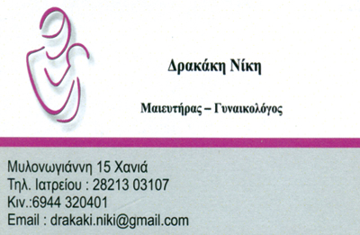 customer tabsΕπικοινωνίαΔέχεται καθημερινά 09:00 -14:00Τρίτη - Τετάρτη - Παρασκευή 18:00 -20:00 με ραντεβούΜαιευτήρες - ΓυναικολόγοιΥγείαΜυλωνογιάννη 15, ΧανιάΧΑΝΙΑ ΧΑΝΙΩΝΧΑΝΙΑΚΡΗΤΗ 2821303107 69443204012821303108drakaki.niki@gmail.com Το προτείνω (έχει προταθεί 0 φορές) ΦωτογραφίεςFacebook LikeShare on FacebookTweet Widget