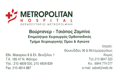 customer tabsΕπικοινωνίαΕπιμελήτρια Χειρουργός ΟρθοπεδικόςΤμήμα Χειρουργικής Ώμου & ΑγκώναΧειρουργός Ορθοπεδικός Τραυματιολόγος - Ιατρείο Οστεοπόρωσης.Δέχεται καθημερινά 17:00 - 21:00, τηλέφωνο για ραντεβού: 69436270802η Διέυθ.: Εθνάρχου Μακαρίου 9 και Ελ. Βενιζέλου 1, Νέο ΦάληροΧειρούργοι ΟρθοπεδικοίΥγείαΘουκιδίδου 36 & Μεταμορφώσεως, Άλιμος, ΑττικήςΑΛΙΜΟΣ ΑΤΤΙΚΗΣΑΤΤΙΚΗΣΤΕΡΕΑ ΕΛΛΑΔΑΝΕΟ ΦΑΛΗΡΟ ΑΤΤΙΚΗΣ 2109847333 2104809000 2104809839 6943627080 ραντεβου 69447740772104814887sabwt@web.de Το προτείνω (έχει προταθεί 0 φορές) ΦωτογραφίεςFacebook LikeShare on FacebookTweet Widget