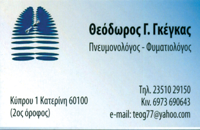 Ειδικευθείς στην Πνευμονολογία στο ΓΠΝΘ "Γ. Παπανικολάου"