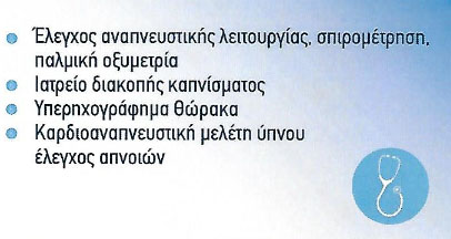 Έλεγχος αναπνευστικής λειτουργίας, σπιρομέτρηση, παλμική οξυμετρία