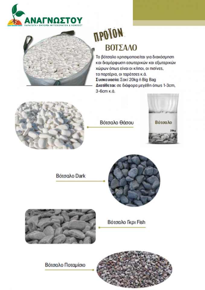 Εδώ και 50 χρόνια, παράγει, συσκευάζει και διοχετεύει στην ελληνική αγορά (φυτώρια, γεωπονικά καταστήματα και κατασκευαστές έργων πρασίνου) αλλά και σε αγορές του εξωτερικού (Κύπρος, Λιβύη, Αλβανία) ελληνικής προέλευσης και παρασκευής φυτοχώματα. Παράλληλα εισάγει αξιόπιστα υποστρώματα από χώρες της Ευρώπης.