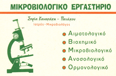 customer tabsΕπικοινωνίαΑιματολογικές, Βιοχημικές, Ορμονολογικές εξετάσειςCheck up, Καρκινικοί δείκτεςΑιμοληψίες κατ'οίκονΔέχεται καθημερινά 07:00 -11:00 & 18:00 -19:00Εκτός Τετάρτης ΑπόγευμαΜικροβιολογικά ΕργαστήριαΥγείαΑρτεμισίας 15, Κώς, ΔωδεκάνησαΚΩΣ ΔΩΔΕΚΑΝΗΣΟΥΔΩΔΕΚΑΝΗΣΑΝΗΣΙΑ ΑΙΓΑΙΟΥ ΠΕΛΑΓΟΥΣ 22420242002242021202s.kanakaki@hotmail.gr Το προτείνω (έχει προταθεί 1 φορές) ΦωτογραφίεςFacebook LikeShare on FacebookTweet Widget