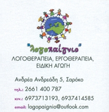 customer tabsΕπικοινωνίαΚιβωτου Ελένη: ΛογοθεραπεύτριαΠουλιάση Ειρήνη: ΕργοθεραπεύτριαΑυτισμός - ΔΕΠΥ - Διαταραχές Άρθρωσης - Αισθητηριακή ΟλοκλήρωσηΤραυλισμός - Πρώιμη ΠαρέμβασηΔέχονται καθημερινά με ραντεβούΛογοπεδικοί - ΛογοθεραπευτέςΥγείαΑνδρέα Ανδρεάδη 5, ΚέρκυραΚΕΡΚΥΡΑΝΗΣΙΑ ΙΟΝΙΟΥ ΠΕΛΑΓΟΥΣ 2661400787 6973713193 6937414585logopaignio@outlook.com Το προτείνω (έχει προταθεί 2 φορές) ΦωτογραφίεςFacebook LikeShare on FacebookTweet Widget