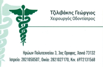 customer tabsΕπικοινωνίαΔέχεται καθημερινά με ραντεβούΧειρουργοί ΟδοντίατροιΥγείαΗρώων Πολυτεχνείου 3, ΧανιάΧΑΝΙΑ ΧΑΝΙΩΝΧΑΝΙΑΚΡΗΤΗ 2821050507 2821027170 οικίας 6972131568drtzil@gmail.com Το προτείνω (έχει προταθεί 0 φορές) ΦωτογραφίεςFacebook LikeShare on FacebookTweet Widget