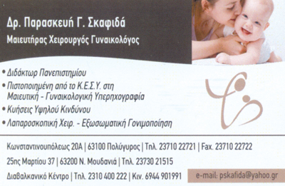 customer tabsΕπικοινωνίαΩράριο: Καθημερινά με ραντεβούΔρ. Παρασκευή Γ. ΣκαφιδάΜαιευτήρας - Χειρουργός ΓυναικολόγοςΔρ. Ευαγγελινός ΔημήτριοςΜαιευτήρας Χειρουργός Γυναικολόγος ΟγκολόγοςΔιδάκτορας Πανεπιστημίου (ΔΠΘ)2ο Ιατρείο: 25ης Μαρτίου 37, Νέα Μουδανιά, Χαλκιδική, τηλ.: 2373021515Διαβαλκανικό Κέντρο τηλ.: 2310400222Μαιευτήρες - ΓυναικολόγοιΥγείαΚωνσταντινουπόλεως 20Α, Πολύγυρος, ΧαλκιδικήΠΟΛΥΓΥΡΟΣ ΧΑΛΚΙΔΙΚΗΣΝΕΑ ΜΟΥΔΑΝΙΑ ΧΑΛΚΙΔΙΚΗΣΧΑΛΚΙΔΙΚΗΜΑΚΕΔΟΝΙΑ 2371022721 2373021515 6944901991 69469039142371022722pskafida@yahoo.grevaggelinos@yahoo.gr Το προτείνω (έχει προταθεί 0 φορές) ΦωτογραφίεςFacebook LikeShare on FacebookTweet Widget
