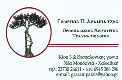 customer tabsΕπικοινωνίαΧειρ. Ορθοπεδικός - ΤραυματιολόγοςΔέχεται καθημερινά 09:30 -13:30 και 17:00 -21:00Ορθοπεδικοί ΙατροίΥγείαΚίου 3 και Θεσσαλονίκης Γωνία, Νέα Μουδανιά, ΧαλκιδικήςΝΕΑ ΜΟΥΔΑΝΙΑ ΧΑΛΚΙΔΙΚΗΣΧΑΛΚΙΔΙΚΗΜΑΚΕΔΟΝΙΑ 2373026611 6945386296grarampatzis@yahoo.gr Το προτείνω (έχει προταθεί 0 φορές) ΦωτογραφίεςFacebook LikeShare on FacebookTweet Widget