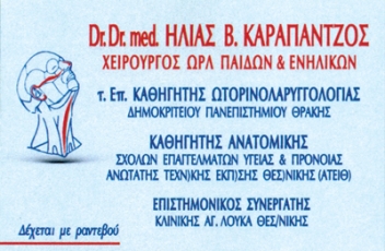 ’’Ο Βλεφαρόσπασμος Απρακτικού Τύπου- Ανάλυση ασθενών υποβληθέντων σε Ανάρτηση άνω βλεφάρου στον μετωπιαίο μυ και ανασκόπηση βιβλιογραφίας’’ (‘’ Blepharospasm of Levator-Inhibition-Type, Analysis of patients after a Lid-to-frontalis-Suspension and Literature-Overview’’) με επίσημη καταχώρηση της διατριβής στην Γερμανική Εθνική Βιβλιοθήκη. - Ιδιώτης ΩΡΛ – Χειρουργός Κεφαλής και Τραχήλου στην Δράμα και Θεσσαλονίκη από τον Ιανουάριο του 2015