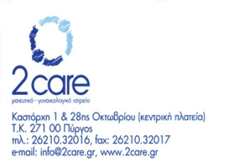 customer tabsΕπικοινωνίαΠρώην Ιατροί Α΄Μαιευτικής και Γυναικολογικής Κλινικής Παν/μίουΑθηνών Νοσοκομείου ΑλεξάνδραςΤμήμα Εμβρυομητρικής ΙατρικήςΩράριο: Καθημερινά 09:00 -13:00 και 17:00 -21:00 εκτός Παρασκευής απογεύματοςΜαιευτήρες - ΓυναικολόγοιΥγείαΜπιζανίου 4 και 28ης Οκτωβρίου, Πύργος, ΗλείαςΠΥΡΓΟΣ ΗΛΕΙΑΣΗΛΕΙΑΠΕΛΟΠΟΝΝΗΣΟΣ 2621032016 6975618740 69360861682621032017info@2care.grwww.2care.gr Το προτείνω (έχει προταθεί 1 φορές) ΦωτογραφίεςFacebook LikeShare on FacebookTweet Widget
