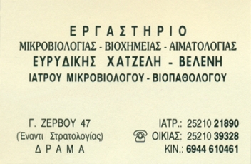 customer tabsΕπικοινωνίαΩράριο:Δευτέρα - Παρασκευή 07:30 - 15:00 & 17:00 -20:00εκτός Τετάρτης απογεύματοςΜικροβιολόγοι - ΒιοπαθολόγοιΜικροβιολογικά ΕργαστήριαΥγείαΓεωργίου Ζερβού 45, ΔράμαΔΡΑΜΑ ΔΡΑΜΑΣΔΡΑΜΑΜΑΚΕΔΟΝΙΑ 2521021890 6944610461 69719538862521021890bxatzeli@gmail.com Το προτείνω (έχει προταθεί 0 φορές) ΦωτογραφίεςFacebook LikeShare on FacebookTweet Widget