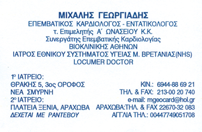 customer tabsΕπικοινωνία2η Διέυθ.: Θράκης 5, Νέας ΣμύρνηςΕιδικός Καρδιολόγος - Εντατικολόγοςτ. Επιμελητής Α Ωνασείου Νοσοκομείου Καρδιολογικού Κέντρου,Ιατρός ΕΣΥ Μεγ. ΒρετανίαςΔέχεται με ραντεβούΚαρδιολόγοιΥγείαΠλατεία Ξένια, Αράχωβα, ΒοιωτίαΑΡΑΧΩΒΑ ΒΟΙΩΤΙΑΣΝΕΑ ΣΜΥΡΝΗ ΑΤΤΙΚΗΣΒΟΙΩΤΙΑΣΤΕΡΕΑ ΕΛΛΑΔΑΑΤΤΙΚΗ 2267032083 2130020740 694488692122670320832130020740mgeorgiadis65@gmail.com Το προτείνω (έχει προταθεί 0 φορές) ΦωτογραφίεςFacebook LikeShare on FacebookTweet Widget