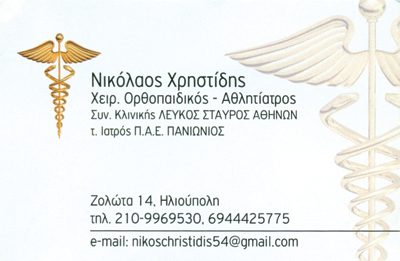 customer tabsΕπικοινωνίαΟρθοπεδικοί ΙατροίΥγείαΖολώτα 14, Ηλιούπολη, ΑττικήΑΘΗΝΑ ΑΤΤΙΚΗΣΑΤΤΙΚΗΣΤΕΡΕΑ ΕΛΛΑΔΑ 2109969530 6944425775nikoschristidis54@gmail.com Το προτείνω (έχει προταθεί 0 φορές) ΦωτογραφίεςFacebook LikeShare on FacebookTweet Widget