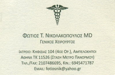customer tabsΕπικοινωνίαΧειρ/κη Μαστού, Προληπτικός έλεγχος Μαστού, Χειρ/κη Θυροειδούς - Πεπτικού, (στομάχου εντέρου), Χολυκυστεκτομή, Κήλες, Μηροκήλη, Βουβονοκήλη, Ραγάδες, Αιμοροϊδες, ΣυρίγγιαΔέχεται με ραντεβούΓενικοί ΧειρουργοίΥγείαΚηφισίας104, Αμπελόκηποι, ΑττικήΑΜΠΕΛΟΚΗΠΟΙ ΑΤΤΙΚΗΣΑΤΤΙΚΗΣΤΕΡΕΑ ΕΛΛΑΔΑ 2107486695 6945471787fotiosnik@yahoo.gr Το προτείνω (έχει προταθεί 0 φορές) ΦωτογραφίεςFacebook LikeShare on FacebookTweet Widget