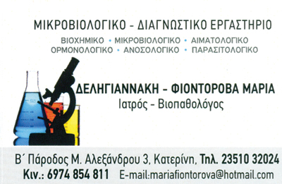customer tabsΕπικοινωνίαΜικροβιολογικές Βιοχημικές, Ορμονολογικές, ΑιματολογικέςΚαρκινικοι Δέικτες, Check up, Προγεννητικός έλεγχοςΑιμοληψίες Κατ΄οίκονΜικροβιολόγοι - ΒιοπαθολόγοιΥγείαΒ΄Πάροδος Μεγ. Αλεξάνδρου 3, Κατερίνη, ΠιερίαΚΑΤΕΡΙΝΗ ΠΙΕΡΙΑΣΠΙΕΡΙΑΜΑΚΕΔΟΝΙΑ 2351032024 6974854811mariafiontorova@hotmail.com Το προτείνω (έχει προταθεί 0 φορές) ΦωτογραφίεςFacebook LikeShare on FacebookTweet Widget