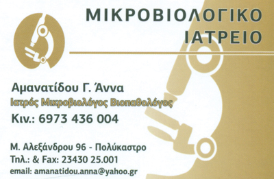 customer tabsΕπικοινωνίαΜικροβιολογικό Εργαστήριο, Αιματολογικές, ΒιοχημικέςΟρμονολογικές, Check up, Αιμοληψίες κατ΄ΟικόνΔέχεται Καθημερινά 07:30 -14:30 και 18:30 -20:00 ( Δευτέρα - Τετάρτη - Παρασκευή)Μικροβιολόγοι - ΒιοπαθολόγοιΥγείαΜεγ. Αλέξάνδρου 96, Πολύκαστρο, ΚιλκίςΠΟΛΥΚΑΣΤΡΟ ΚΙΛΚΙΣΚΙΛΚΙΣΜΑΚΕΔΟΝΙΑ 2343025001 6973436004amanatidou.anna@yahoo.gr Το προτείνω (έχει προταθεί 0 φορές) ΦωτογραφίεςFacebook LikeShare on FacebookTweet Widget