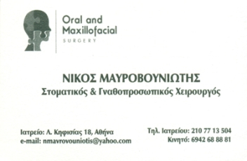customer tabsΕπικοινωνίαΣτοματικός - Γναθοπροσωπικός ΧειρουργόςΗ ειδικότητα της στοματικής και γναθοπροσωπικής χειρουργικής περιλαμβάνει τη διάγνωση και τη θεραπεία παθήσεων της περιοχής της κεφαλής και του τραχήλου.Σε επίπεδο ιατρείου αντιμετωπίζονται χειρουργικές παθήσεις των γνάθων αλλά και των περιστοματικών μαλακών μορίων:Εξαγωγή έγκλειστων δοντιώνΕξαγωγή δοντιών των οποίων η αφαίρεση δεν είναι εφικτή από γενικό οδοντίατροΑφαίρεση κύστεων και μικρών όγκων των γνάθωνΑκρορριζεκτομέςΤοποθέτηση εμφυτευμάτωνΑναπλήρωση ελλειμμάτων μαλακών και σκληρών ιστών με μοσχεύματα (οστικά-ιστικά)Αφαίρεση βλαβών του δέρματος του προσώπουΑποκάλυψη έγκλειστων ή αγκυλωμένων δοντιών για ορθοδοντικούς λόγουςΑφαίρεση χαλινώνΑντιμετώπιση φλεγμονών-αποστημάτωνΛήψη βιοψίωνΤέλος αντιμετωπίζονται ασθενείς με βεβαρυμένο ιατρικό ή ψυχολογικό ιστορικόΣε νοσοκομειακό επίπεδο αντιμετωπίζονται:Ορθογναθικές επεμβάσειςΟγκολογική χειρουργικήΕπεμβάσεις αποκατάστασης ελλειμμάτωνΑσθενείς των οποίων η κατάσταση της υγείας απαιτεί νοσοκομειακό περιβάλλον και ιατρική παρακολούθησηΑσθενείς με έντονη φοβία ή αντανακλαστικά.Στοματικοί Γναθοπροσωπικοί ΧειρουργοίΥγείαΛ. Κηφισίας 18, Αθήνα, ΑττικήΑΘΗΝΑ ΑΤΤΙΚΗΣΑΤΤΙΚΗΣΤΕΡΕΑ ΕΛΛΑΔΑ 2107713504 6942688881nmavrovouniotis@yahoo.com Το προτείνω (έχει προταθεί 0 φορές) ΦωτογραφίεςFacebook LikeShare on FacebookTweet Widget