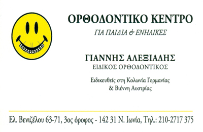 customer tabsΕπικοινωνίαΕιδικευθείς Κολονία Γερμανίας και Βιέννης ΑυστρίαςΚαθημερινά 17:00 -20:00 με ραντεβούΟ ορθοδοντικός Γιάννης Αλεξιάδης αποφοίτησε από το οδοντιατρικό τμήμα του ΕΚΠΑ.Ειδικεύτηκε στην ορθοδοντική στις κλινικές Βιέννης Αυστρίας και Κολωνίας Γερμανίας.Είναι κάτοχος γερμανικού τίτλου ειδικού ορθοδοντικού από το 1990.Εργάστηκε για 8 χρόνια σε πολυορθοδοντική κλινική στην Κολωνία ως μέτοχος. Το 1996 ιδρύει στη Νέα Ιώνια Αττικής το ορθοδοντικό του ιατρείο το οποίο λειτουργεί με επιτυχία έως και σήμερα.Είναι μέλος της ορθοδοντικής εταιρείας Ελλάδος.Σύγχρονη Ορθοδοντική Θεραπεία παιδιών και ενηλίκων με όλες τις νέες μεθόδουςΔιαφανή και Γλωσσικά ΣιδεράκιαΛευκά ΣιδεράκιαΑόρατους ΜηχανισμούςΔιαφανείς ΝάρθηκεςΑισθητική Ορθοδοντική ΟρθοδοντικοίΥγείαΕλ. Βενιζέλου 63-71, Νέα Ιωνία, ΑττικήΝΕΑ ΙΩΝΙΑ ΑΤΤΙΚΗΣΑΤΤΙΚΗΣΤΕΡΕΑ ΕΛΛΑΔΑ 2102717375 6932708817ioannisalexiadis@yahoo.comhttp://www.orthodontikosioannisaleksiadis.gr Το προτείνω (έχει προταθεί 0 φορές) ΦωτογραφίεςFacebook LikeShare on FacebookTweet Widget